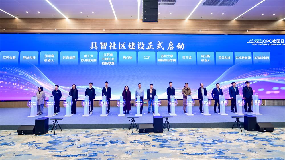 4月11日,以“AI·成就梦想”为主题的苏州OPC社区日活动在CCF业务总部&学术交流中心隆重举行。本次活动由苏数科集团、江苏金服、苏州高铁新城管委会主办,中国计算机学会(CCF)OPC社区、全市标杆OPC社区协办,旨在深入落实国家 “人工智能+””行动部署,聚焦人工智能时代创业新趋势,助力苏州打造全国OPC创业首选城市。