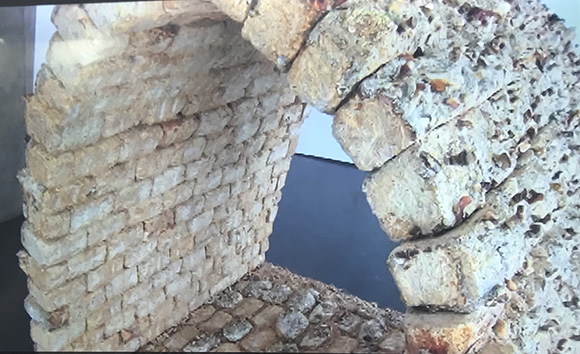 这些砖块被烘干和固化,逐渐变得轻巧而坚固。将有活性的真菌砖放在一起,这些砖块仍会生长且真菌细胞会自行黏连,不需要使用粘合剂。