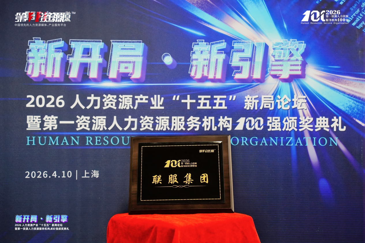 近日,“新开局・新引擎 ——2026人力资源产业‘十五五’新局论坛暨第一资源人力资源服务机构100强颁奖典礼”在上海圆满举办。凭借卓越的综合实力、创新的服务模式与深厚的行业积淀,联服集团再度蝉联 “2026第一资源人力资源服务机构100 强”,这一权威荣誉不仅是对联服集团过往成绩的高度肯定,更彰显了联服在人力资源服务领域的标杆地位与持续领跑能力。