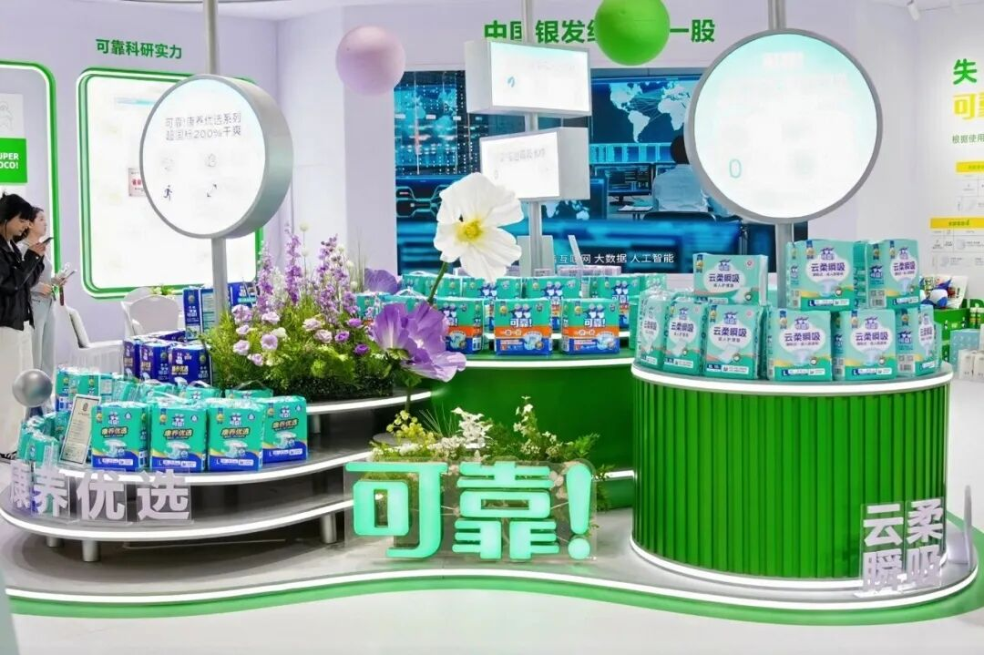 在成人失禁护理展区,可靠带来的不仅是升级产品,更是一套更成熟的护理体系。以“可靠!加强型成人纸尿裤3.0”为代表,在延续“海量吸收、一夜一片”核心优势的基础上,进一步通过弹力防背漏专利结构优化夜间舒适体验,同时融合九臻黄精精华,实现对敏感肌肤的温和呵护。而“康养优选系列”则进一步向专业护理场景延伸,精准匹配不同失禁等级人群需求,推动机构护理向更精细化、标准化发展。产品的升级,不只是性能提升,更是可靠对用户的理解在不断深化。