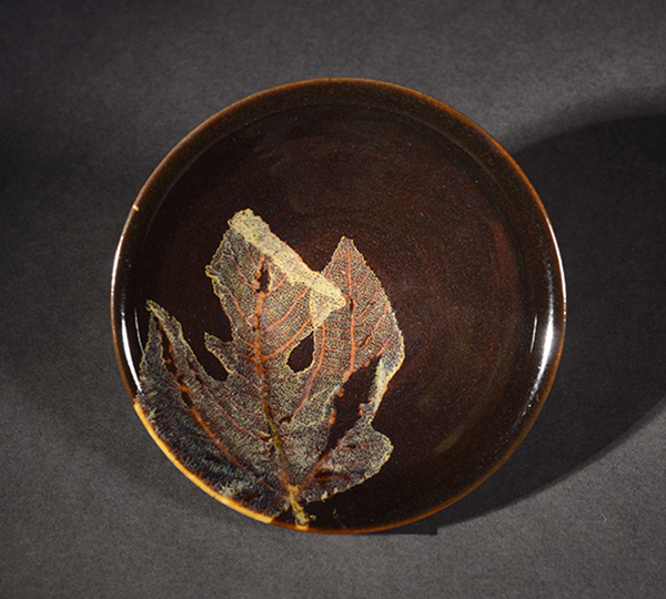原来抓不到的那点东西就是天目山寺庙里的禅味。当叶子在1280-1300度的高温下燃烧成灰再与釉药结合那一刹那,叶灰自然落下与釉药结合后形成的叶子形状,虽然造型未必完整,但却真切自然,也绝不会重复。这种短暂、残缺的朴素美,正是茶道和禅宗的侘寂之境,与宋朝的极致美学密不可分。