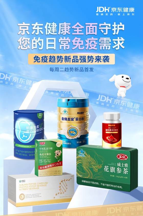 4月21日,京东健康免疫新品日启动,天美健、康恩贝、黄金搭档、富膳达斯FOSDUS、汇仁品牌旗下6款营养保健新品集中首发。此次上市的新品精准聚焦蛋白补充、精力提升、基础免疫等多元健康需求,旨在为银发人群、慢病人群等提供更科学、便捷的精细化营养解决方案。即日起,消费者登录京东APP搜索“免疫新品宣发日”,即可便捷选购相关新品。