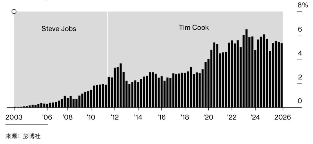 市值管理大师的身份可以概括库克对苹果所做的:他一手塑造了苹果的供应链体系和软硬一体的商业模式。