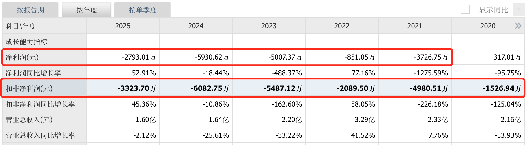 2025年天迈科技实现营业收入1.6亿元,同比下滑2.12%;归属于上市公司股东的净利润亏损2793.01万元。虽然亏损幅度较前一年有所收窄,但这已是天迈科技自2021年以来连续第五个年头陷入亏损泥潭,按扣非净利润来计,更是连续六年录得亏损。