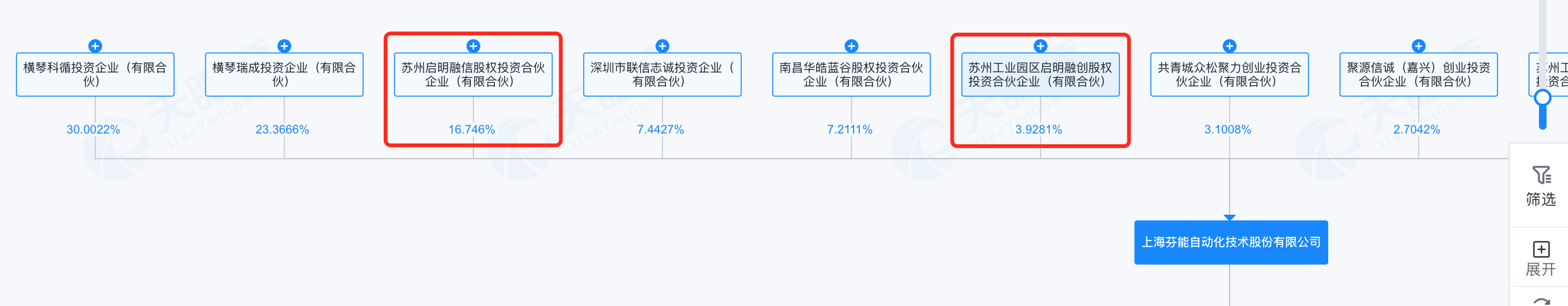 界面新闻注意到,芬能自动化在2016年11月完成了A轮融资,融资金额5000万元,启明创投是其投资方,2022年7月完成A+轮融资,融资金额未披露。天眼查显示,苏州启明融信股权投资合伙企业(有限合伙)、苏州工业园区启明融创股权投资合伙企业(有限合伙)均位列芬能自动化前十大股东,合计持股比例超过20%。