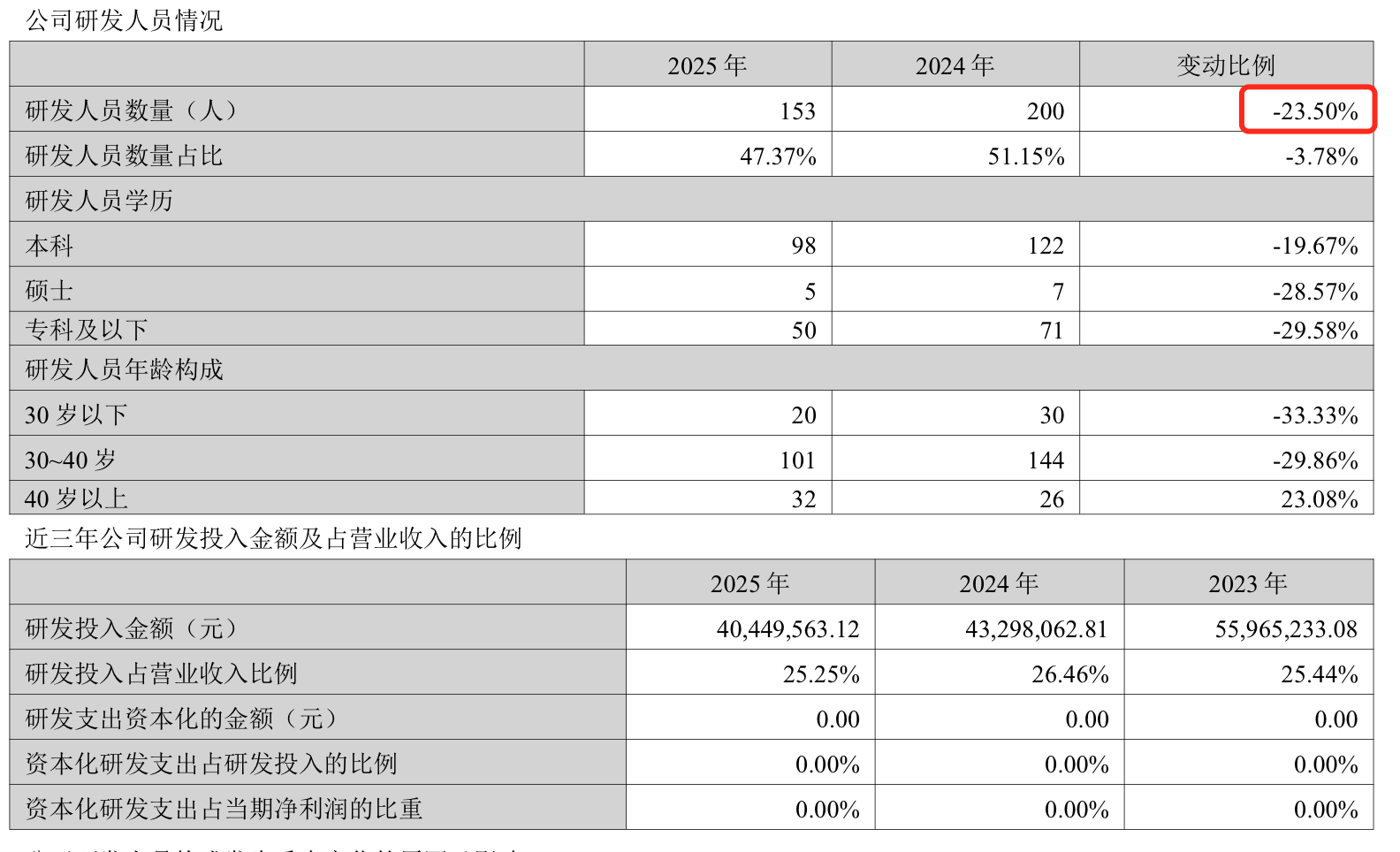 有个细节不容忽视。根据天迈科技的年报,2025年末,公司研发人员数量为153人,同比减少了23.5%。同时,公司研发投入金额数量也呈现逐年减少的态势。