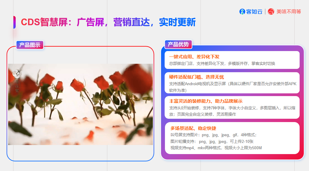 众所周知,茶饮经营模式更看重效率。此次茶饮解决方案,在系统的收银点单方面,将更符合经营场景所需,界面既简洁又直观,店员操作也将更加的方便。其CDS智慧屏方案,实现“多屏联动”——叫号取餐屏、广告屏与菜单屏各司其职、协同运作:广告屏灵活运用视频、海报、动态模板等丰富形式,实时呈现新品或联名活动;菜单屏清晰展示饮品菜单,同步亮出线上点单二维码,引导排队顾客自助下单;叫号屏则实时同步排队进度,方便顾客及时取餐。三屏联动模式,既提升点取餐效率,又助力转化与营业额增长,简直是双赢。