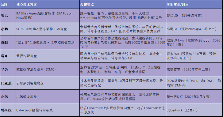 华为作为供应商的角色尤为特殊,其乾崑数字底盘引擎通过打通X、Y、Z三轴控制,将动力、制动、车身、底盘进行全域融合,并可向车企开放研发体系和流程标准。2026年预计搭载华为乾崑智驾的车型将超80款,累计搭载量预计达300万辆。