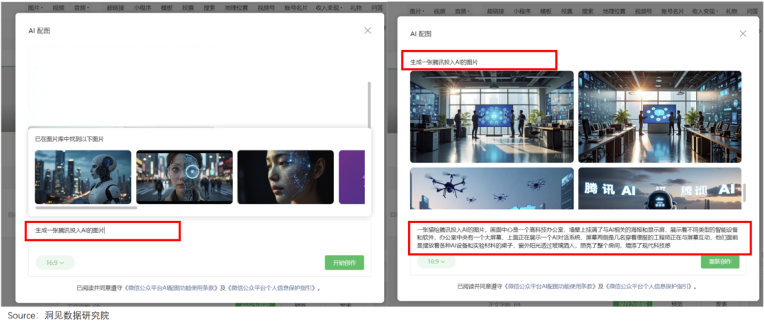 “表外表里”编稿时就发现,公众号后台可直接文生图:敲下关键词,库存AI图片就弹了出来;即使提示词简短,系统生成时也会自动扩写,全程傻瓜操作,十几秒就得到一张插图。