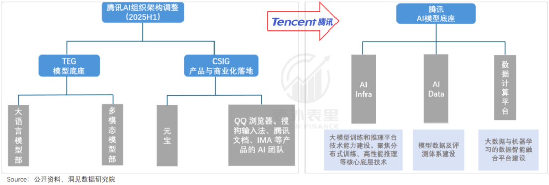 意识到问题,腾讯开始艰难转身。先是在2025上半年,为混元研发体系配备独立团队,收拢分散的算法力量;同时把元宝、QQ浏览器等AI团队全部划入CSIG(产品与商业化落地),形成面向C端统一战线。