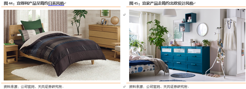 宜得利以及宜家旗下产品设计均出公司设计师之手,宜得利产品设计融合了日系简约风格,而宜家产品设计风格为北欧简约风,款式基本,能百搭于各种装修风格,因此客户受益群体较广,且在公司进行海外扩张的同时,能避免旗下产品与当地文化产生冲突。