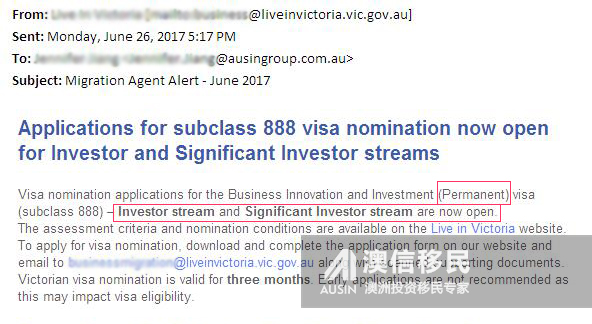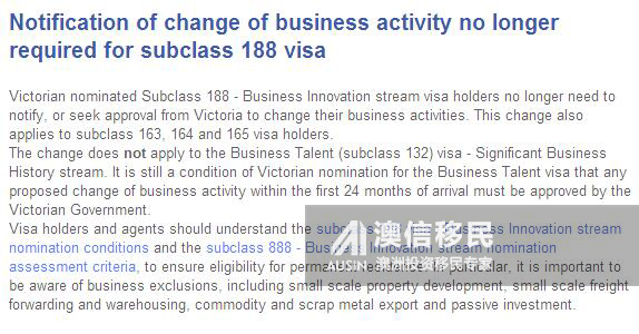维州移民局在邮件中提到:由维州政府提名的188A 商业创新签证,如果生意项目有所变动,不再需要通知维州政府。