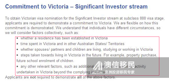 澳信移民专家提醒188C签证投资人,获批签证后,一定要与维州建立相应的联系,让移民官认为你是喜欢维州,很希望移民维州的。多在维州居住、或者在维州工作经商,子女在维州就读等都可以为后期转永居有很大的帮助。