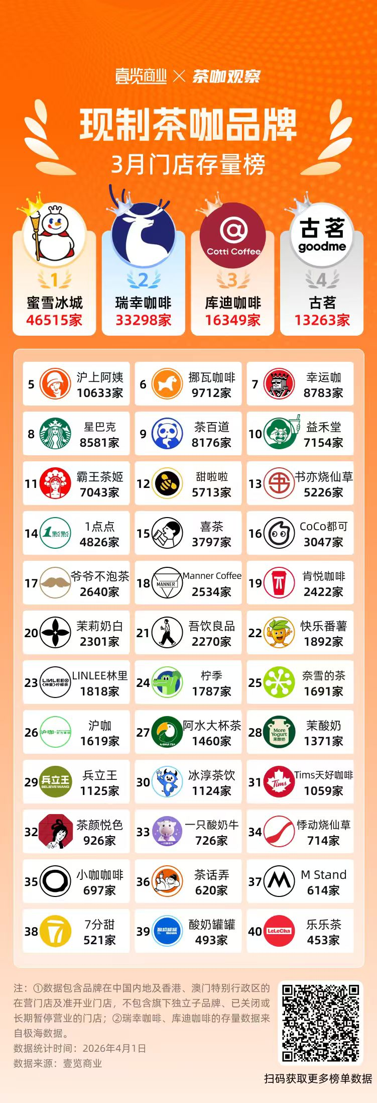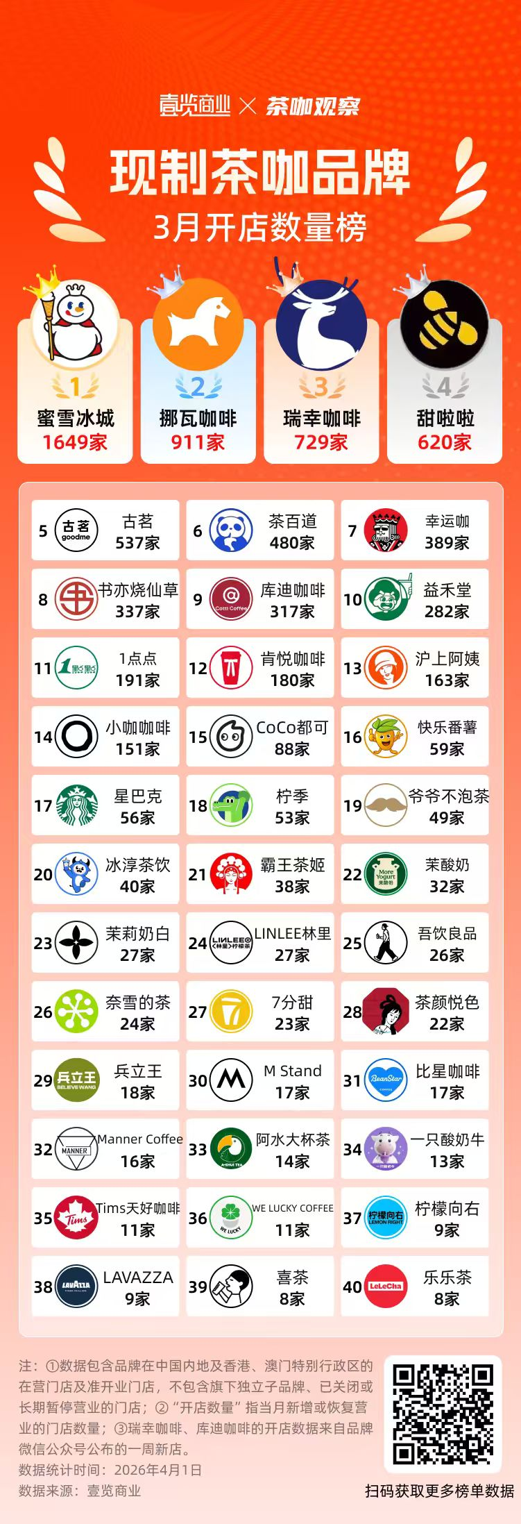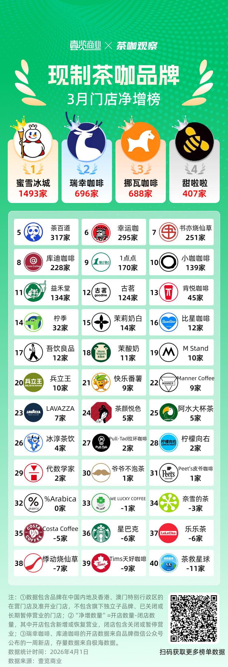2026年3月,头部品牌在快速扩张的同时,也在优化门店网络。