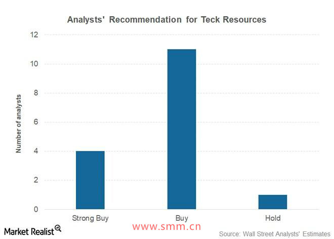 据路透调查的分析师表示,泰克资源的目标价为35.60加拿大元(约合26.85美元)。 相比其2017年6月23日的收盘价上涨了62.0%。 总体而言,分析师似乎继续看好泰克资源。 19位分析师中的18名将其归入“买入”或等值评级,一名分析师给予“持有”。相反,自由港麦克莫伦和南方铜业获得分析师“买入”评级的比例分别仅为16.7%和21.4%。