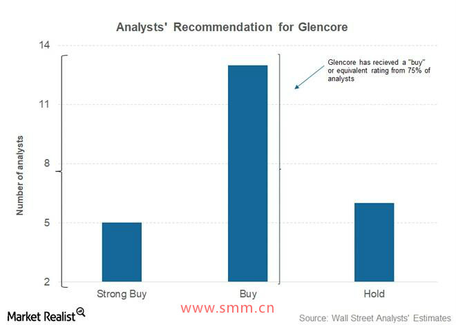 分析师一致看好嘉能可股价。 汤姆森路透社调查的24位分析师中,有18人给出了“买入”或等值评级。剩下的六位分析师将嘉能可评为“持有”。没有分析师给出“卖出”评级。