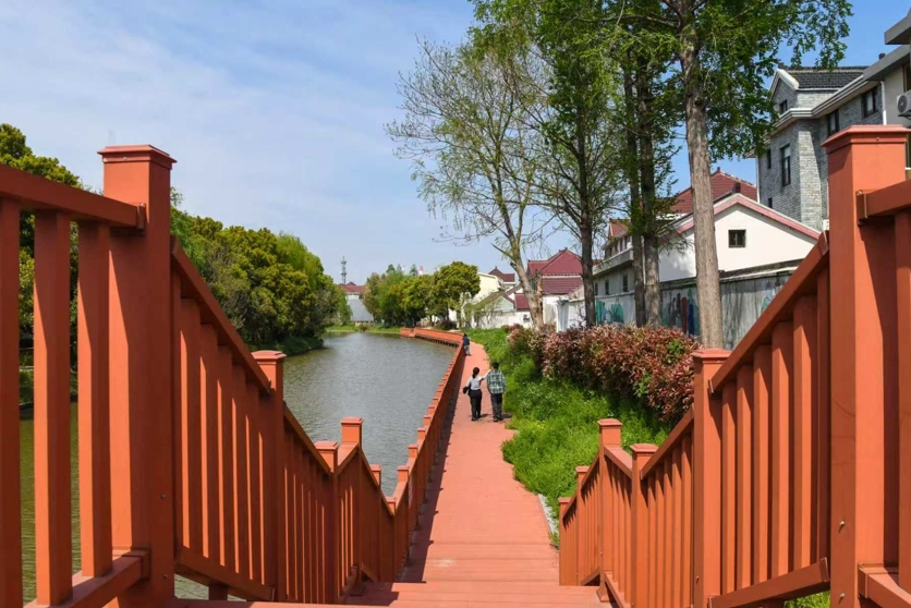 漫步顾泾河旁的步道,江南水乡风情一览无余