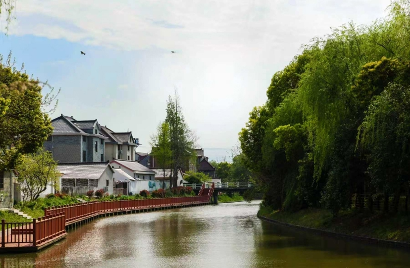 北部的梅林村舍,梅林、曲水、垂柳、湿地共同构成怡然自得的田园画卷。规划打造衔水村落、东林梅坞、湿地观潮等节点,还原“湾塘调蓄、泾浜绕村”的传统人居意境。