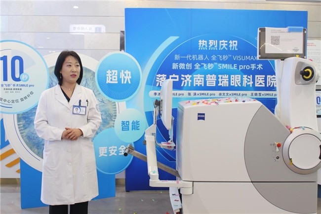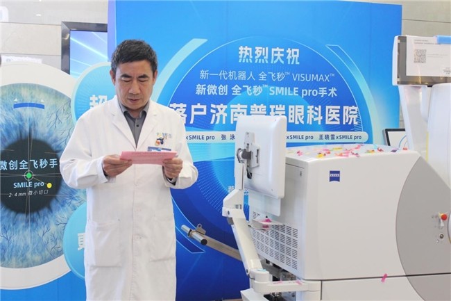 2026年4月23日,济南普瑞眼科医院院内气氛热烈,备受瞩目的蔡司新一代机器人全飞秒VISUMAX 800新微创全飞秒SMILE pro装机仪式在此隆重举行。作为国家三级眼科专科医院和全国连锁上市眼科机构,此次引进标志着济南普瑞眼科在近视矫正领域正式迈入“超快、智能、更精准”的全新手术时代,为齐鲁大地近视人群带来国际前沿的摘镜新选择。