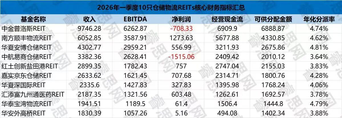 (数据来源:各REITs2026年一季度报告;单位:万元)