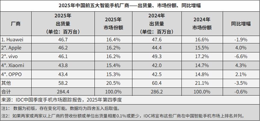 就比如荣耀,去年公司原 CEO 赵明卸任离开,李健上台之后,荣耀的管理团队大幅换血,多名核心高管离职,中层洗牌调整。根据三家主流市场研究机构 IDC、Omdia 以及 Counterpoint 公布的统计数据,均显示荣耀在 2025 年已经掉出中国前五大智能手机厂商榜单,沦为 Others 阵营。这是荣耀自独立以来首次未能位列中国前五。