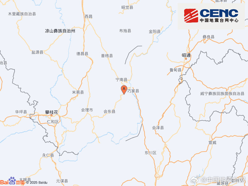 四川凉山州宁南县附近发生3.5级左右地震