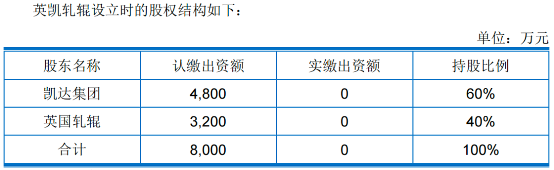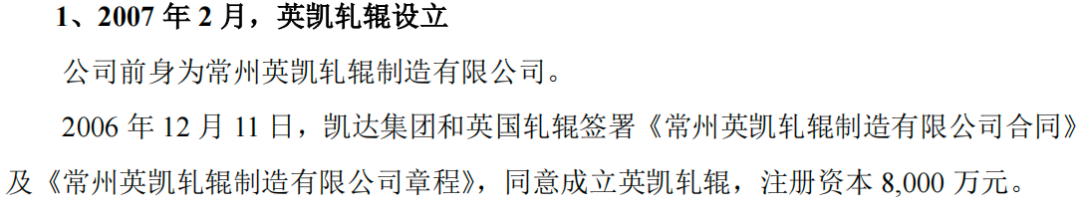 2007年2月,凯达集团和英国轧辊共同成立常州英凯轧辊制造有限公司,注册资本为8000万元。