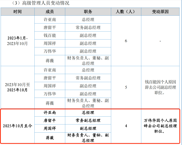 值得注意的是,2025年10月,万伟华因个人原因,辞去了公司副总经理职位。