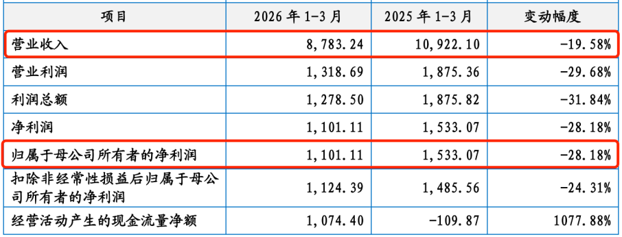 不过,在2026年一季度营收、利润双双下滑之下,公司募资扩产的合理性备受外界质疑。