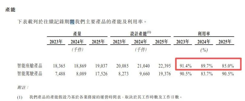 与此同时,公司现有产能的利用率已经在持续下滑。数据显示,德赛西威智能座舱产品的产能利用率已连续三年下降,从2023年的91.4%降至2024年的89.7%,再到2025年的85%。