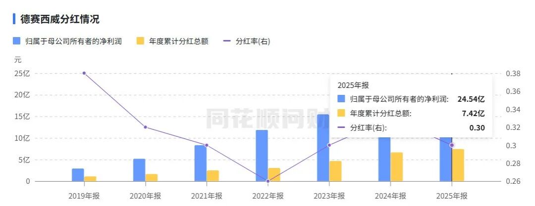 值得一提的是,德赛西威在向市场大规模募资的同时,也在持续向股东分红。2023年-2025年,公司累计向股东分红18.75亿元,占同期归母净利润的比例为31%。