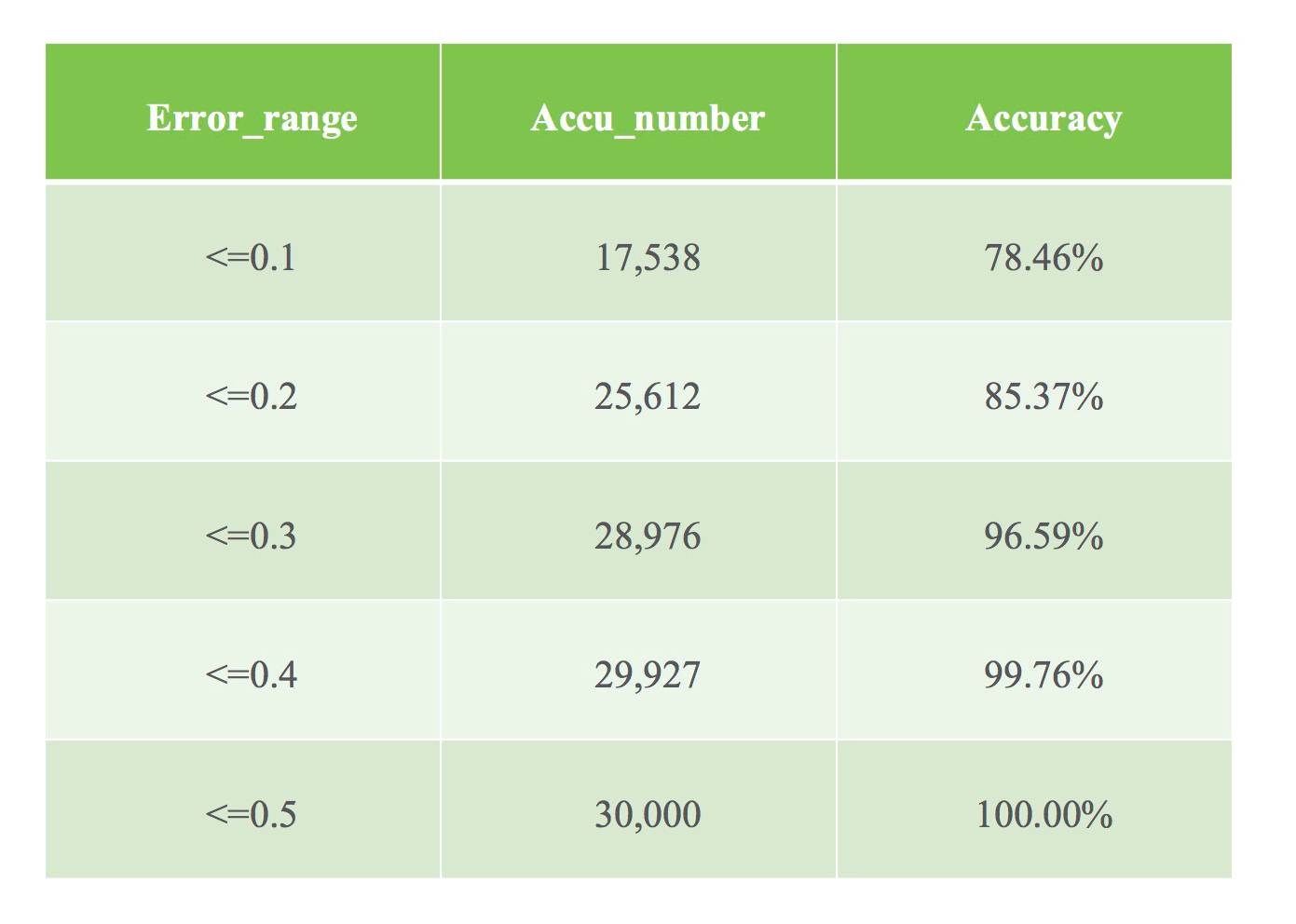 当误差阈值设定为0.5时,模型的Accuracy近乎可达到100%。