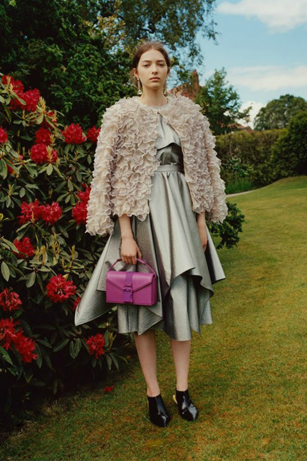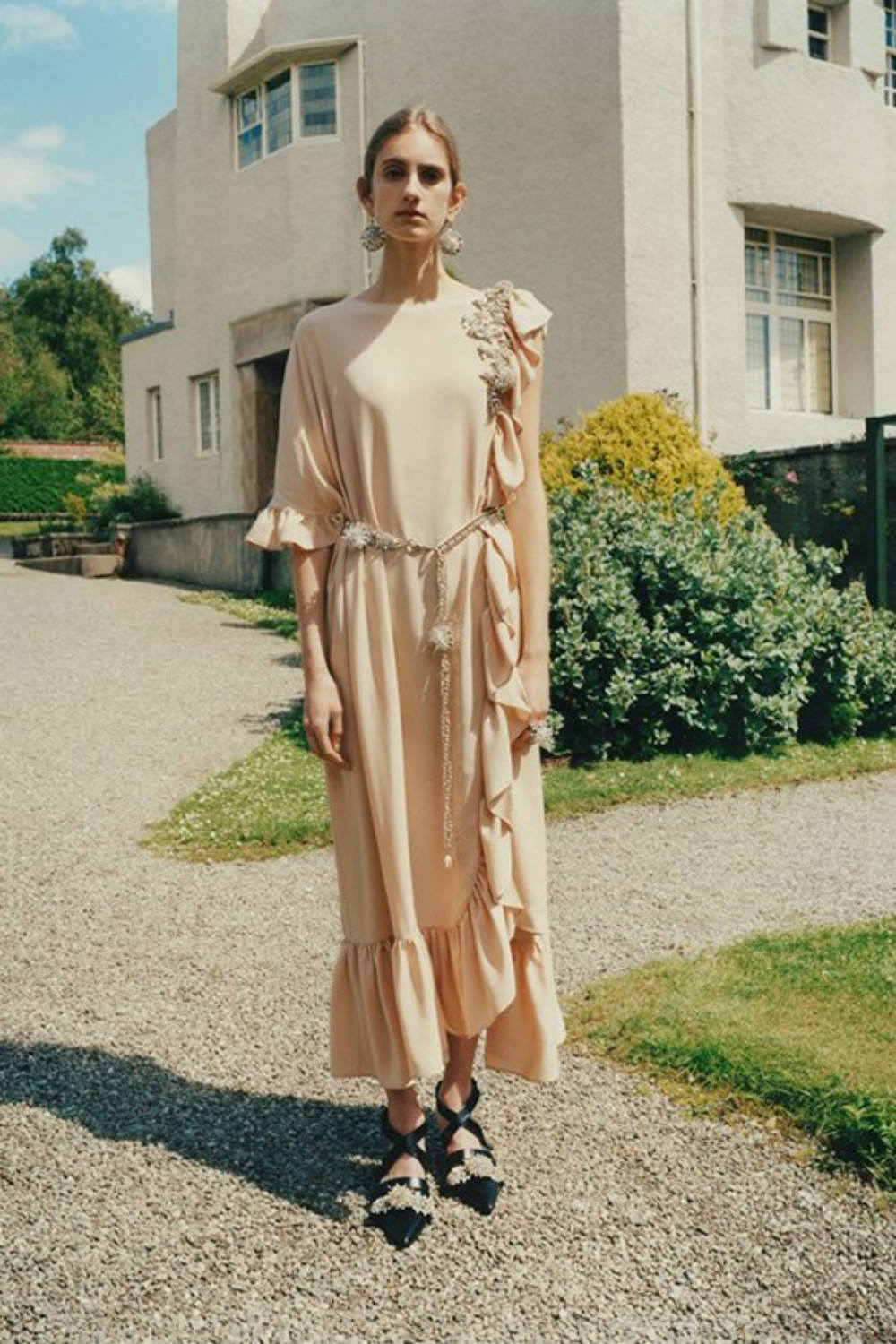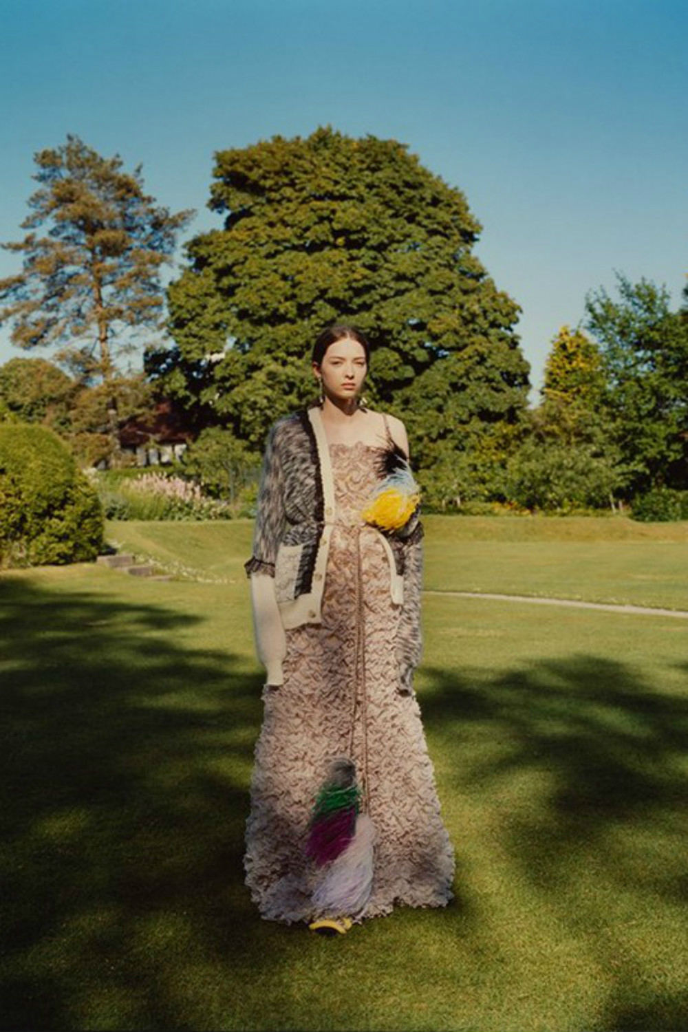 Christopher Kane品牌创立于2006年,创始人是Christopher Kane和他的妹妹Tammy Kane。因此,该品牌每一季的设计与面料选择均是相得益彰,深受业内认可。此次发布的2018 早春系列,设计师大量运用了蕾丝、羽毛和花卉等装饰元素,给人以一种文艺浪漫的感觉,为了更好地表达设计意图,设计师选择在一座古老的苏格兰庄园里拍摄新品型录。
