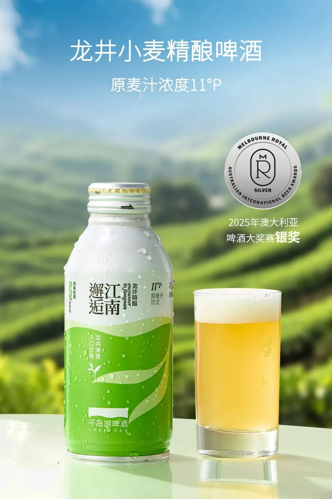 到2025年,品牌推出龙井小麦啤酒,不是简单加入茶味,而是把龙井的清香,与德式小麦啤酒的酵母风味结合,形成更柔和、层次更清晰的口感。创造出一种独属于江南的风味体验。这款啤酒也斩获了澳大利亚啤酒大奖银奖,证明了本土品牌有能力输出自己的风味标准。