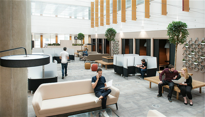 办公楼面积约为6500平方米,内部有大大小小的视频会议室,和供员工休憩的公共区域。人们可以使用扶手躺椅和脚蹬补充睡眠,或是冲把澡换个心情。疲倦时,员工还能远程操作厨房里的咖啡机。公司的设计初衷,是把办公室建成能刺激员工工作欲望的地方。