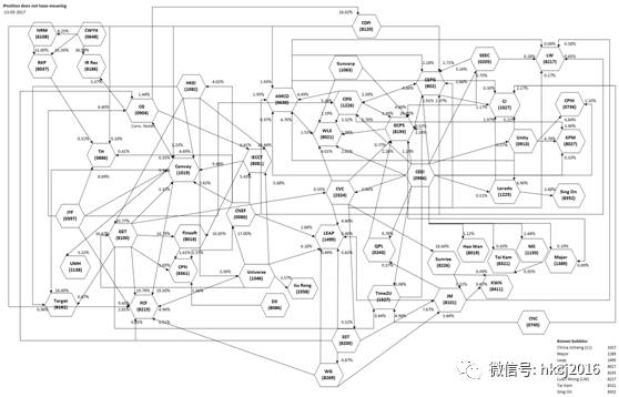 还有那个神算子一样的David Webb,在个人网站发布了“迷之网络:50只不能买的港股”(The Enigma Network:50 stocks not to own)的文章,看完文章配用的迷之网络图,只能感叹,果然符合“老千股”脾气,就是下面这张: