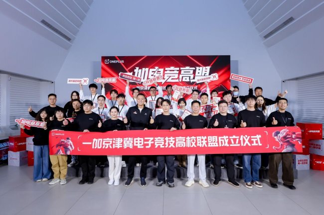 2026年4月19日,由一加举办的一加京津冀电子竞技高校联盟成立仪式在北京举行。一加中国区品牌总经理刘宝有、OPPO 北京总经理祝志华、北京市体育产业协会专职副会长兼秘书长高原鸣与中国传媒大学、南开大学、河北传媒学院等 9 所高校教师代表、京津冀电竞社团代表共同见证联盟成立。