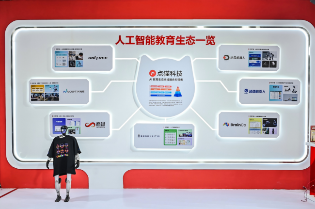 展会期间,点猫科技重点围绕科创教育服务方案、AI教育赋能、AI编程赋能三大主题,系统呈现了在人工智能教育领域的创新模式和成果案例;同时,携手多家国内顶尖人工智能企业,联合打造并展示了一体化AI教育生态体系,吸引了众多教育工作者、行业同仁及观众驻足参观和深度体验。