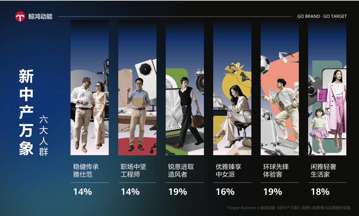 在这一能力底座加持下,鲸鸿动能携手 VOGUE Business发布《新中产万象:消费心智群像与品牌增长指南》 ,通过体系化的方法论深度描摹出鸿蒙生态中亿级新中产人群六大人群画像——从环球先锋体验客到锐意进取造风者、闲雅轻奢生活家,从职场中坚工程师到优雅臻享的中产女性,稳健传承雅仕范,每一类高价值人群的需求与偏好都被清晰解构。