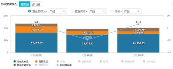 2025年,熊猫乳品的贸易乳品板块实现销售收入7708.36万元,同比下降39%。这已经是乳品贸易板块收入连续第四年下降,占营业收入的比也从2021年的29.7%下降到2025年的9.5%。