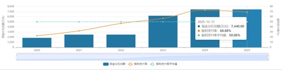 熊猫乳品2025年预计派发现金红利7700万元,股利分配率达到68.88%。2024年的股利分配率则为72.59%。上市至今,公司已累计实施分红6次,累计分红金额约2.79亿元。