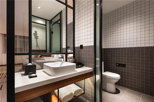 北京西站六里桥澳斯特WOW酒店,则展现了品牌面对成熟商圈存量物业的强大焕新与升级能力。项目位于西站商圈核心,由原有物业焕新升级而来,拥有56间客房。