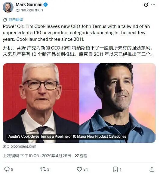 行业反应总体偏暖。OpenAI的奥尔特曼第一时间发推致敬,称库克是“传奇”。韦德布什的丹·艾夫斯则从另一个角度解读了时机:“如果业绩糟糕,库克绝不会离开。”选择在财报前官宣,本就是一场精心安排的预期管理。