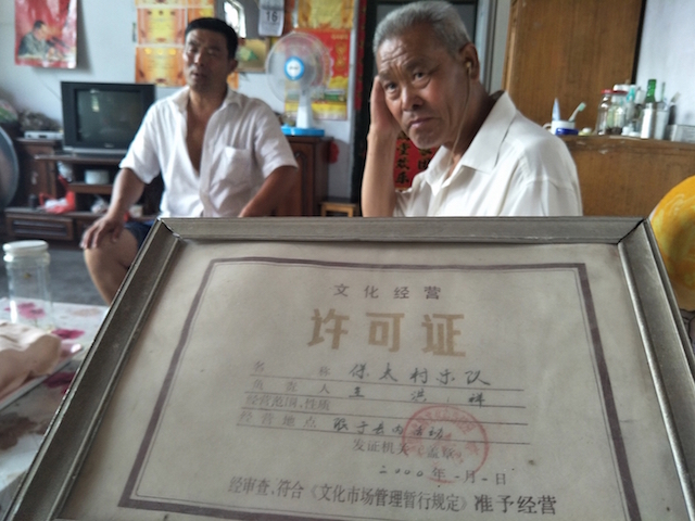 “礼法不同,吹法不一样。”王瑞永说,唢呐是依托在丧葬礼仪上的。另外,父亲王洪祥办理的《文化经营许可证》,经营地点也仅限于本县(平邑县),虽然早已经作废。王洪祥还为这个生气,“早先让办,就办了。现在办了也不管来”。