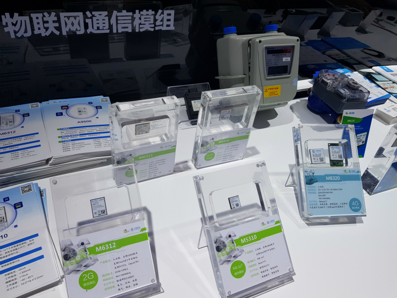 中国移动展示了基于物联网通信的模组,它们分为2G通信模组、NB—IoT通信模组和4G通信模组。