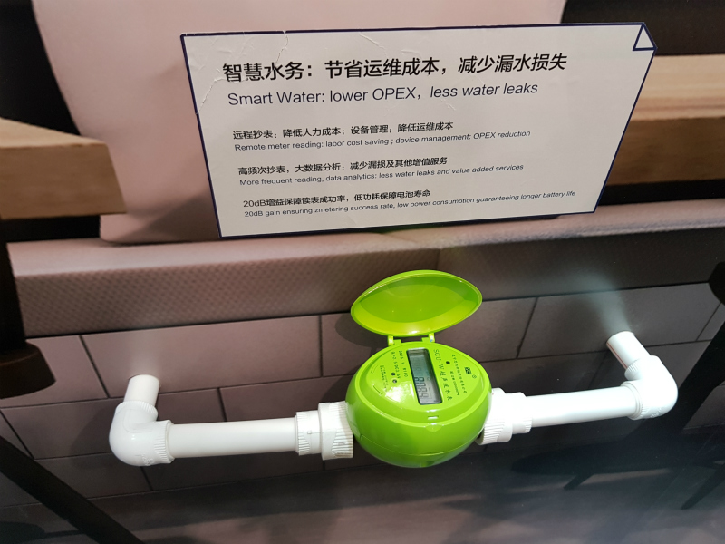 在MWC—Shanghai的展台,华为演示了基于NB—IoT模组的智能水务、智能停车、环境监测、智能路灯四个场景,其中智能水务系统已开始商用。