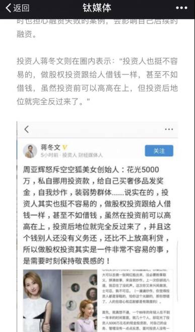 ▲蒋冬文今日头条发表内容被钛媒体引用