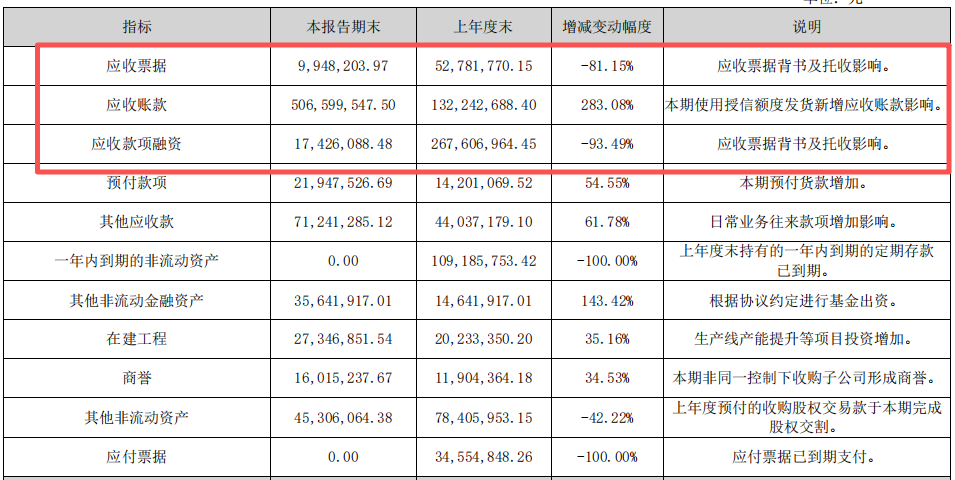 首先是应收账款与收入的增速差异。在应收账款方面,季报显示,截至一季度末余额为5.07亿元,较年初的1.32亿元增长283.08%,比起营收增长的5.52%,两者相差悬殊。东阿阿胶在公告中称,主要原因是本期使用授信额度发货新增应收账款影响。