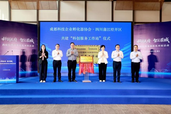 活动现场,全市首个产业园区科创服务工作站正式启动,成都科技企业孵化器协会与四川蒲江经开区达成深度合作,将全国领先的科创服务资源、体系全面引入蒲江,为区域科创体系建设、产业转型升级提供专业、系统的服务支撑,搭建起校企地协同创新的坚实桥梁。