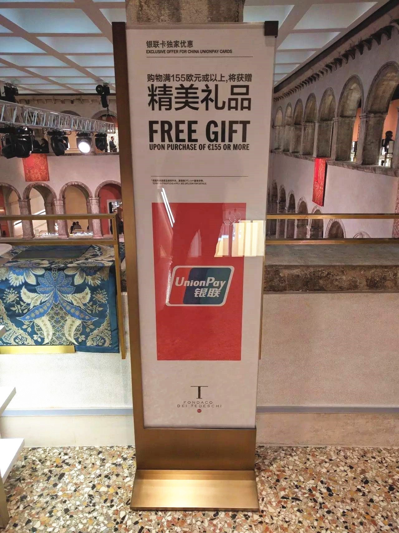其实为了给来这里的每一个客人提供良好的服务,这家DFS的每一个店员,在上岗之前都要接受1-2个月非常细致的培训,需要对每个在售品牌都有所了解,不但了解品牌故事,还要了解最新产品系列。但我面前的这些意大利店员,却并没有展现出受过良好培训的样子,他们懒散地站着,不时还互相之间闲聊两句。也许是来的客人让他们提不起兴致,也许他们根本不觉得自己在贩售什么被吹嘘得天花乱坠的奢侈品——不过只是一家免税店罢了。